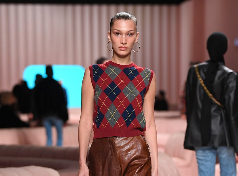 Gucci, Dior, Prada, Marc Jacobs, and Alessandra Rich, among other fashion houses, sending models in sweater vests down their fall 2020 runways was yet another indication that it was only a matter of time before you and I turned to Depop or fished out a sweater vest from the back of our dads’ closets. Once Bella Hadid somehow made argyle look less "ugh" and more "oooh" and Harry Styles’ Lanvin sweater vest with several fuzzy sheep on it cleared my acne, the damage was done. Sweater vests were back with a vengeance, like an ex with a post-breakup glow-up, dangling all you could've had right in front of your face.