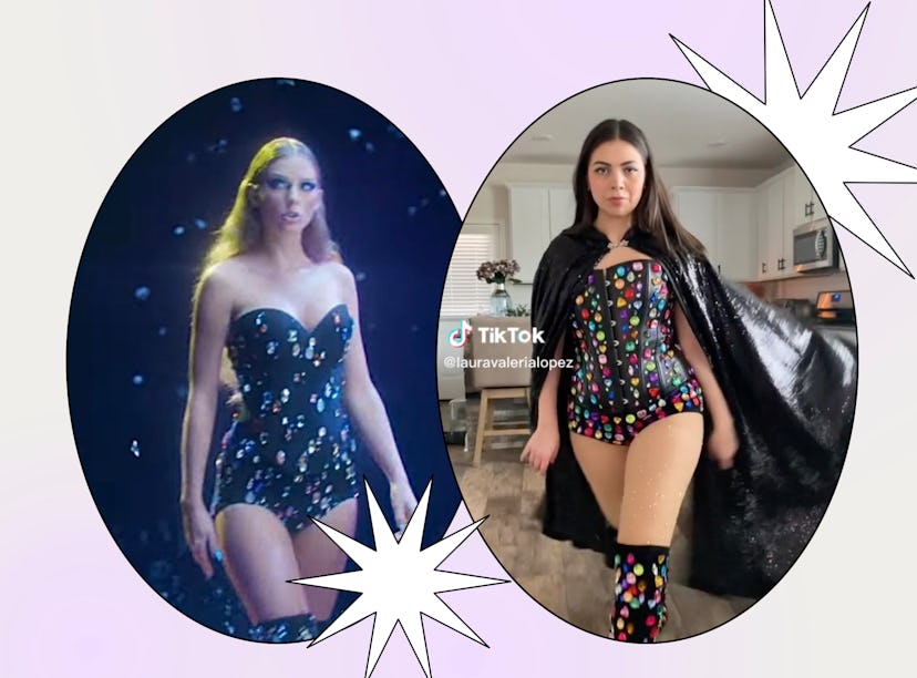 With dozens of music videos to the multi-hyphenate’s name — some of them with multiple outfit changes — there’s a ton of inspo for Swifties to draw from in their lewks. For those with an abundance of patience and creativity, some are recreating her iconic “Bejeweled” ‘fit to make the whole stadium shimmer.